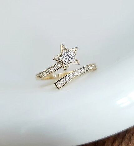 華やかな星モチーフにジルコニアの輝きを添えた、ラグジュアリー感あふれるリング。 ハイブランド風のデザインで、指先を品よく彩りながらも主張しすぎず、 どんなコーデにも馴染みます。 フリーサイズでフィット感の調整も簡単。 特別な日のお出かけはもちろん、普段使いにもおすすめの一品です。 ・サイズ:フリー(微調整可) ・素材:ジルコニア、銅