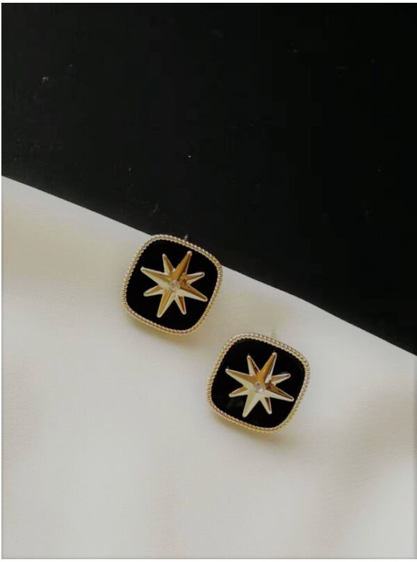洗練されたブラックと上品なゴールドの組み合わせが、耳元にモードなアクセントを添えるピアスです。 中央にあしらわれたスター型のモチーフが華やかに輝き、シンプルながらも印象に残る存在感を演出します。 モノトーンコーデはもちろん、クールな装いや大人カジュアルにも相性抜群。 小ぶりながらも個性を引き立てる、万能なアイテムです。 ◆カラー:ブラック×ゴールド ◆サイズ:H/ 約1.6cm W/ 約1.6cm ◆素材:合金